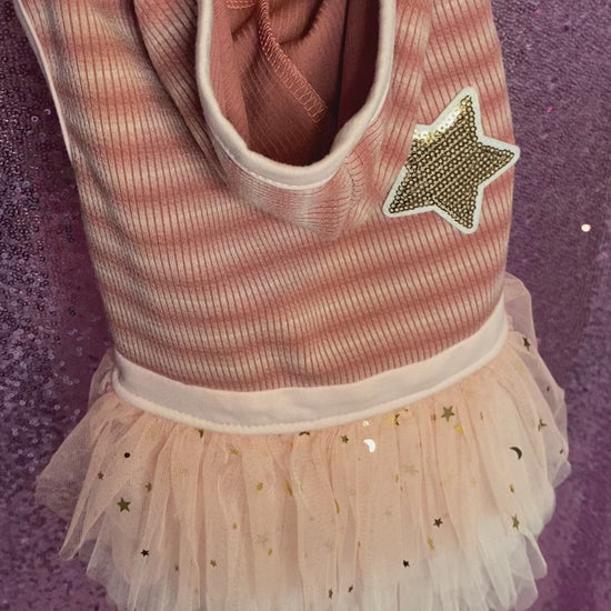 Perfect for all seasons. This light weight dress is high quality and super cute. Fits most dogs 10-16 lbs. 17-19 inch chest size.